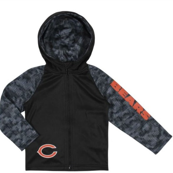 Cool weather won't keep that team pride under wraps with this toddler boys' officially licensed Chicago Bears hooded jacket! Your future MVP will enjoy the soft, comfy feel of the 100% poly surgent fleece. It keeps him warm and cozy when the game plan calls for time outdoors. The snug hood offers protection from the elements That bold Bears logo features prominently in screenprint on the front of the jacket. His team loyalties will be on proud display any time he dresses out. Machine wash and dry cleaning makes laundry day simpler for busy moms!