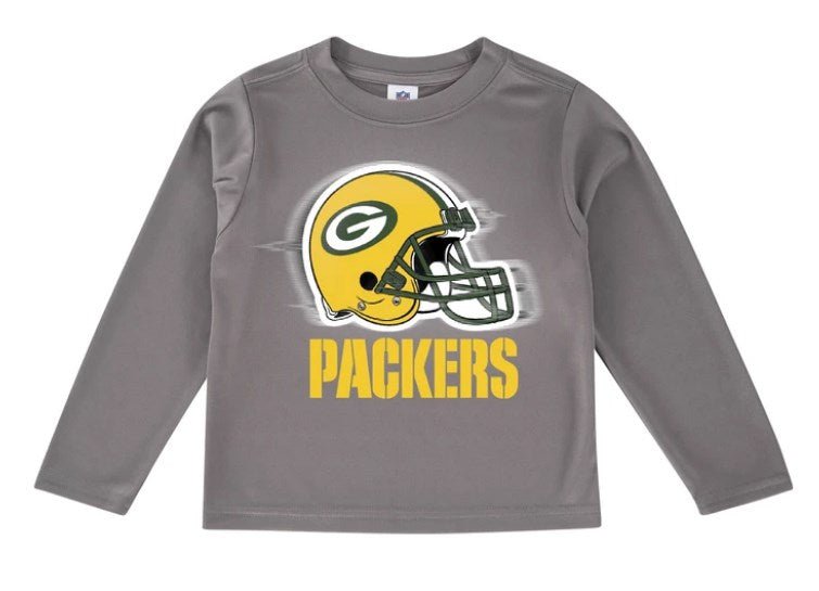 - Dress him up as a number one fan with this officially licensed Green Bay Packers toddler boys' long sleeve logo tee! Screen print artwork puts the Packers logo on prominent display. These wardrobe favorites let the world know on game day or any day where his loyalties lie. A soft, cozy polyester interlock keeps him all warmed up and ready for play. This toddler boys’ long sleeve tee is perfect to pair up with his favorite pair of toddler boys’ pants to create comfortable and festive outfits. The machine wash and dry fabric allows for hassle-free laundry days. He’ll love how comfortable he feels in these long sleeve tees and you’ll love just how handsome he looks! This long sleeve tee makes great gifts for any little Green Bay Packers fans! Make each game a little more special by including your little one in on the fun!