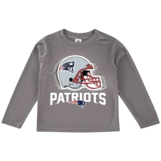 - Dress him up as a number one fan with this officially licensed New England Patriots toddler boys' long sleeve logo tee! Screen print artwork puts the Patriots logo on prominent display. These wardrobe favorites let the world know on game day or any day where his loyalties lie. A soft, cozy polyester interlock keeps him all warmed up and ready for play. This toddler boys’ long sleeve tee is perfect to pair up with his favorite pair of toddler boys’ pants to create comfortable and festive outfits. The machine wash and dry fabric allows for hassle-free laundry days. He’ll love how comfortable he feels in these long sleeve tees and you’ll love just how handsome he looks! This long sleeve tee makes great gifts for any little New England Patriots fans! Make each game a little more special by including your little one in on the fun!