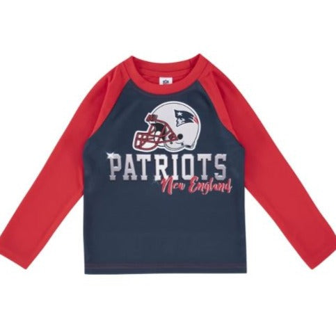 - Dress him up as a number one fan with this officially licensed New England Patriots toddler boys' long sleeve tee! Sublimation print artwork puts the Patriots logo on prominent display. These wardrobe favorites let the world know on game day or any day where his loyalties lie. A soft, cozy polyester interlock keeps him all warmed up and ready for play. This toddler boys’ long sleeve tee is perfect to pair up with his favorite pair of toddler boys’ pants to create comfortable and festive outfits. The machine wash and dry fabric allows for hassle-free laundry days. He’ll love how comfortable he feels in these long sleeve tees and you’ll love just how handsome he looks! This long sleeve tee makes great gifts for any little Patriots fans! Make each game a little more special by including your little one in on the fun!
