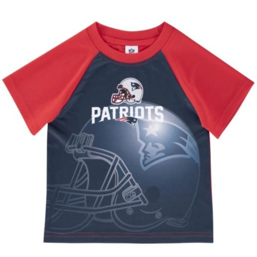 - Dress him up as a number one fan with this officially licensed New England Patriots toddler boys' short sleeve tee! Sublimation print artwork puts the Patriots logo on prominent display. These wardrobe favorites let the world know on game day or any day where his loyalties lie. A soft, cozy polyester interlock keeps him cooled off and ready for play. This toddler boys’ short sleeve tee is perfect to pair up with his favorite pair of toddler boys’ pants or shorts to create comfortable and festive outfits. The machine wash and dry fabric allows for hassle-free laundry days. He’ll love how comfortable he feels in these short sleeve tees and you’ll love just how handsome he looks! This short sleeve tee makes great gifts for any little Patriots fans! Make each game a little more special by including your little one in on the fun!