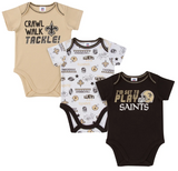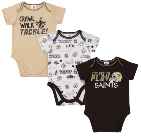 - includes three officially licensed New Orleans Saints short sleeve bodysuits