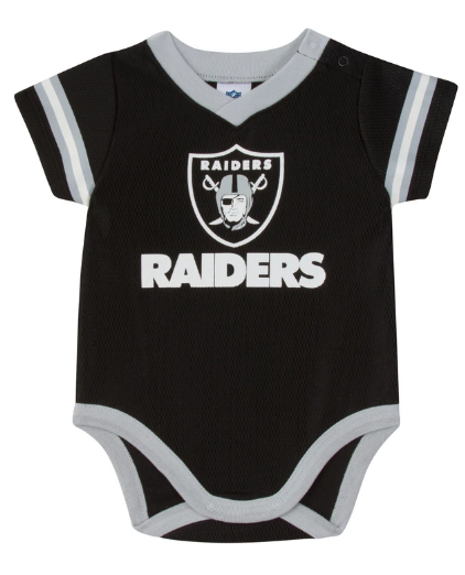 - includes one officially licensed Oakland Raiders short sleeve bodysuit