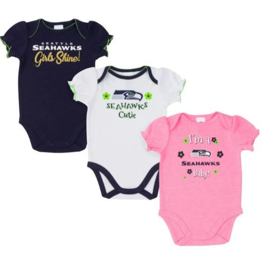 - includes three officially licensed Seattle Seahawks short sleeve bodysuits