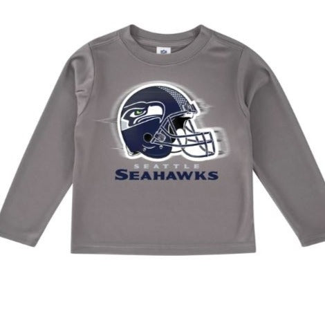 - Dress him up as a number one fan with this officially licensed Seattle Seahawks toddler boys' long sleeve logo tee! Screen print artwork puts the Seahawks logo on prominent display. These wardrobe favorites let the world know on game day or any day where his loyalties lie. A soft, cozy polyester interlock keeps him all warmed up and ready for play. This toddler boys’ long sleeve tee is perfect to pair up with his favorite pair of toddler boys’ pants to create comfortable and festive outfits. The machine wash and dry fabric allows for hassle-free laundry days. He’ll love how comfortable he feels in these long sleeve tees and you’ll love just how handsome he looks! This long sleeve tee makes great gifts for any little Seattle Seahawks fans! Make each game a little more special by including your little one in on the fun!