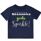 - Dress her up as a number one fan with this officially licensed Seattle Seahawks toddler girls' short sleeve tee! Sublimation print artwork puts the Seahawks logo on prominent display. These wardrobe favorites let the world know on game day or any day where her loyalties lie. A soft, cozy polyester interlock keeps her cooled off and ready for play. This toddler girls’ short sleeve tee is perfect to pair up with her favorite pair of toddler girls’ pants or shorts to create comfortable and festive outfits. The machine wash and dry fabric allows for hassle-free laundry days. She’ll love how comfortable she feels in these short sleeve tees and you’ll love just how adorable she looks! This short sleeve tee makes great gifts for any little Seahawks fans! Make each game a little more special by including your little one in on the fun!